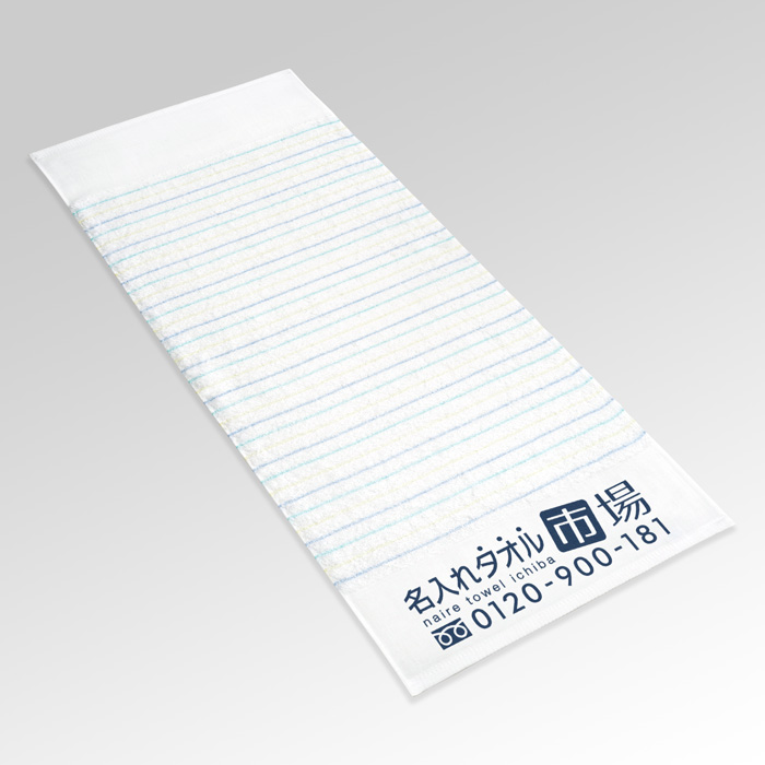 淡い色のラインがさわやかなパステルラインはシンプルな中にもちょっとおしゃれな印象のデザイン。清潔感がありますので、色々な業種のご挨拶や粗品のご利用に人気の名入れタオルです。さらに生地は厚手の240匁でフカフカしており、高級感もあります。 粗品・ノベルティのタオルを良質なものにすれば、会社のイメージもグーンとUP。渡した相手の方にも大いに喜んでもらえる上、印刷した名前の広告効果もあがります。 名前の印刷については本体に合わせて淡い色の名入れ文字を入れるのも良し、濃いめの色で文字を目立たせるのも良し。ロゴやマークを印刷することも可能です。お客様の好みに合わせて自由にご選択ください。 ※名入れタオル市場の泉州タオルは、大阪の伝統ある老舗企業のタオルのみを使用し、品質にもこだわった名入れタオルをお届けしています。 ※ベタ(塗りつぶし)部分が多いデザインは印刷をお受けできない場合があります。 イラストレーターデータ入稿用テンプレート(片側印刷用) イラストレーターデータ入稿用テンプレート(両側印刷用)