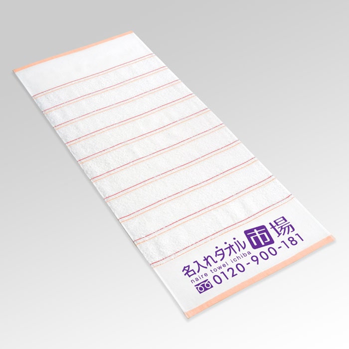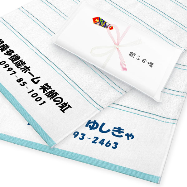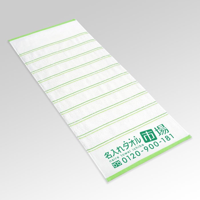 さわやかな印象で、清潔感のあるライトライン。ご挨拶や粗品に使いやすいデザインが好評で、自動車・住宅の販売業、建設業や保険会社、幼稚園・保育園など様々な業種の方にご利用いただいています。大人から子供、男性・女性問わず、誰でも使いやすいデザインなので、幅広い客層の方にお渡しすることができます。 柄入りタオルの中では比較的コストが安いのもライトラインの魅力で、価格を抑えつつ個性的な名入れタオルが作成できます。 生地は安心の国産・泉州タオルで一般的な200匁。程よい厚さで使いやすいのも喜ばれる理由の一つです。 名前の印刷については紺や水色の印刷色での名入れが人気です。ロゴやマークの印刷にももちろん対応できます。書体によって印象が変わるので、用途に合わせてご自由にご選択ください。 ※名入れタオル市場の泉州タオルは、大阪の伝統ある老舗企業のタオルのみを使用し、品質にもこだわった名入れタオルをお届けしています。 ※ベタ(塗りつぶし)部分が多いデザインは印刷をお受けできない場合があります。 柄入りの泉州名入れタオル一覧はこちら イラストレーターデータ入稿用テンプレート(片側印刷用) イラストレーターデータ入稿用テンプレート(両側印刷用)