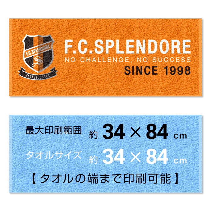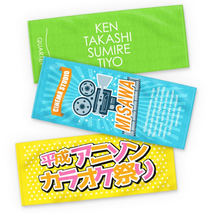 高品質な今治産!生地の端まで印刷できる全面印刷のフェイスタオルです。タオル全面に印刷することで、存在感も際立ちます。多くの人の目を集めることが出来るので、スポーツの応援タオルやライブグッズなどに人気のオリジナルタオルです。