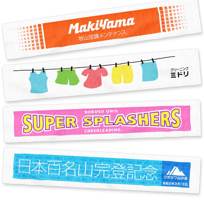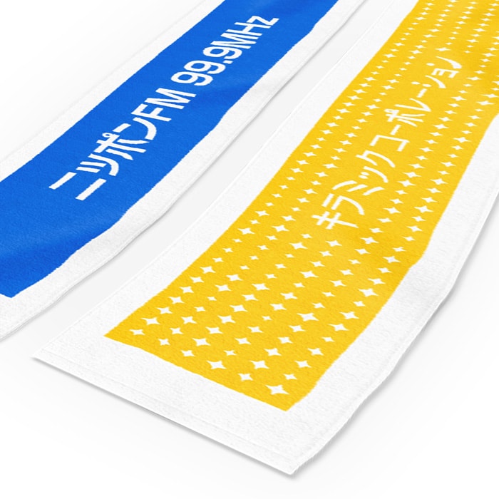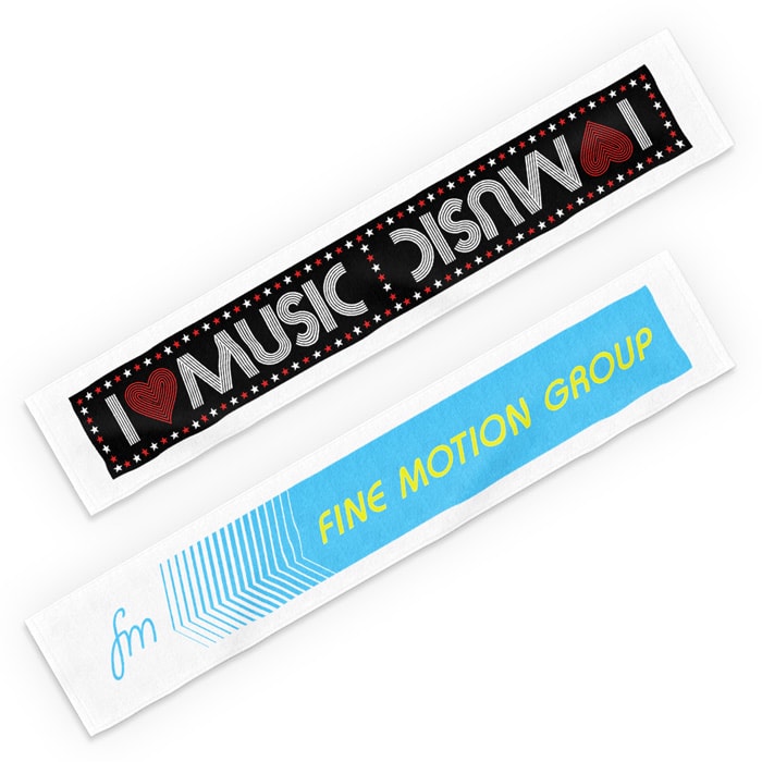 細かいデザインが得意なので、細長いマフラータオルとの相性も良く、おしゃれなオリジナルタオルを簡単に作ることができます。スポーツチームの名前やアーティスト名など、長めの文字もマフラータオルならスマートにデザインすることができます。