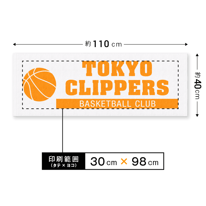 低コストで作成できる広範囲プリントのスポーツタオルです。タオルの生地はオリジナルスポーツタオルによく使われる500匁で、印刷に最適なシャーリング生地を使用しますので、プリントもきれいに仕上がります。こちらのタオルは端部分への印刷が出来ないタイプになりますが、スポーツタオルの場合はベースのタオル生地が大きいので印刷スペースも十分取ることができます。生地端部分に特にこだわらない方にはこちらの商品がおすすめ。