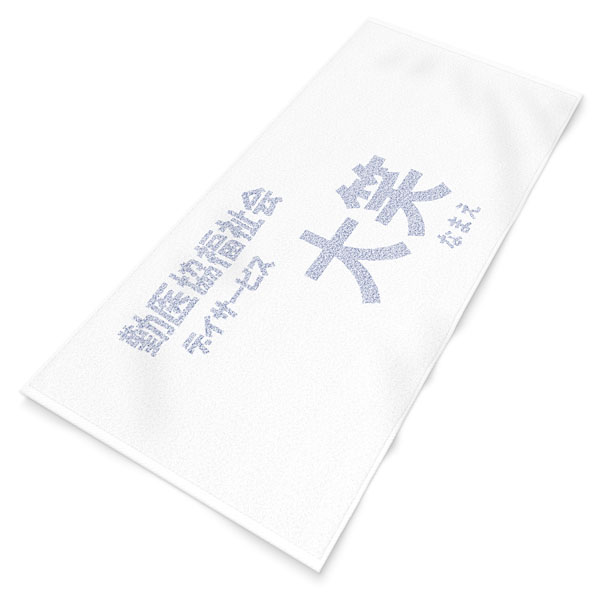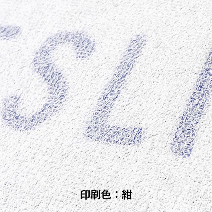 薄手の180匁のタオルを使用して作成する捺染タオルです。180匁のタオルはスパや温泉などの浴用タオルとして使われることが多いので、そういうところにあるくらいの厚みだとイメージしてもらうと分かりやすいかもしれません。1枚当たりのタオルの重さは約56g程度。薄手のタオルは濡らした時に絞りやすいので、先述の通り温泉旅館や銭湯、スパなどでご利用される場合におすすめです。また、予算面でもかかる費用を抑えて作成できますので、予算重視の方におすすめです。印刷の色は赤・紺・アズキ・オレンジの4色の中からご選択いただけます。