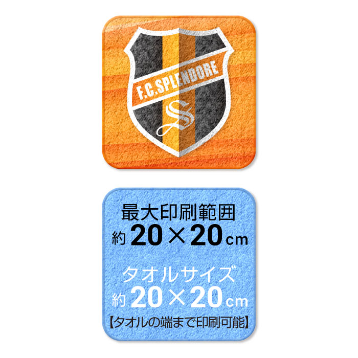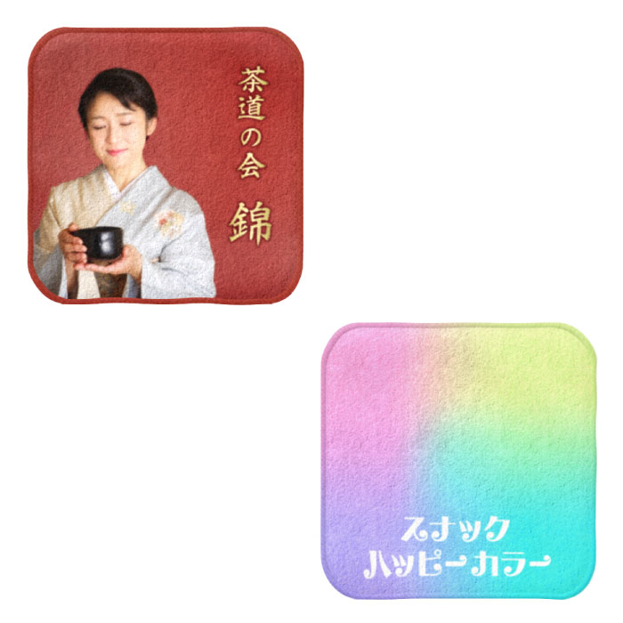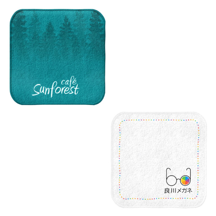 タオルの形状はカドが丸くて可愛らしい印象に仕上がるタイプです。カドの形状による価格差はありませんので、お客様のご希望の形状をご選択ください。カド角タイプのフルカラープリントミニタオルはこちら