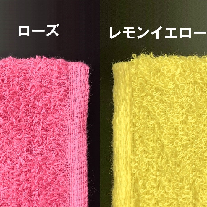 存在感のある濃色系のカラータオルです。生産は日本国内、伝統の泉州地方のタオルになりますので品質面も安心です。生地色バリエーションは全部で7種類。濃色系のカラータオルは見た目のインパクトもありますので渡した相手の方の印象に残りやすく、販促効果も高い所も魅力の一つです。個性的な名入れタオルを作りたいという方に是非お勧めの商品です。名入れの印刷色についてですが、こちらの商品は生地の色が強いため、生地色の影響で印刷色が変わりやすいのでご注意ください。下地の影響を受けにくい黒や濃紺の印刷色での名入れがおすすめです。 ※名入れタオル市場の泉州タオルは、大阪の伝統ある老舗企業のタオルのみを使用し、品質にもこだわった名入れタオルをお届けしています。 ※ベタ(塗りつぶし)部分が多いデザインは印刷をお受けできない場合があります。 泉州名入れタオル 白生地はこちら イラストレーターデータ入稿用テンプレート(片側印刷用) イラストレーターデータ入稿用テンプレート(両側印刷用)