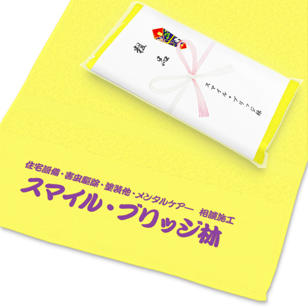 生地色:黄印刷方法:片側1色名入れ印刷色:紫書体:勘亭流レイアウト:2行タイプ