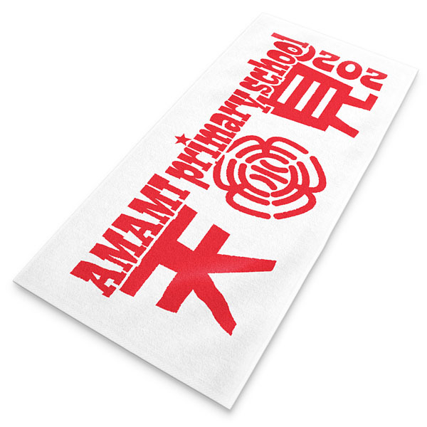 サイズ:フェイスタオル生地色:白印刷方法:広範囲印刷印刷色:赤レイアウト:データ入稿