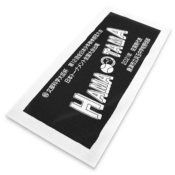 サイズ:フェイスタオル生地色:白印刷方法:広範囲印刷印刷色:黒書体:データ入稿レイアウト:データ入稿