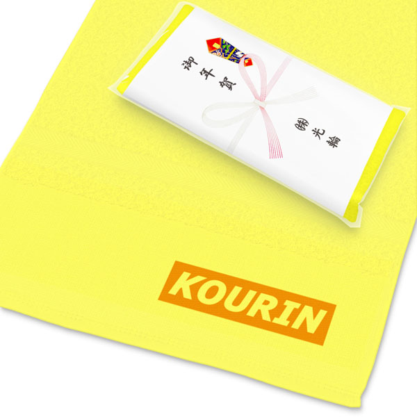 生地色:黄印刷方法:片側1色名入れ印刷色:オレンジ書体:角ゴシック体レイアウト:1行タイプ