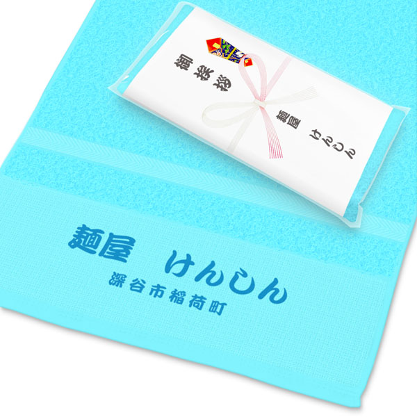 生地色:青印刷方法:片側1色名入れ印刷色:青書体:勘亭流レイアウト:2行タイプ