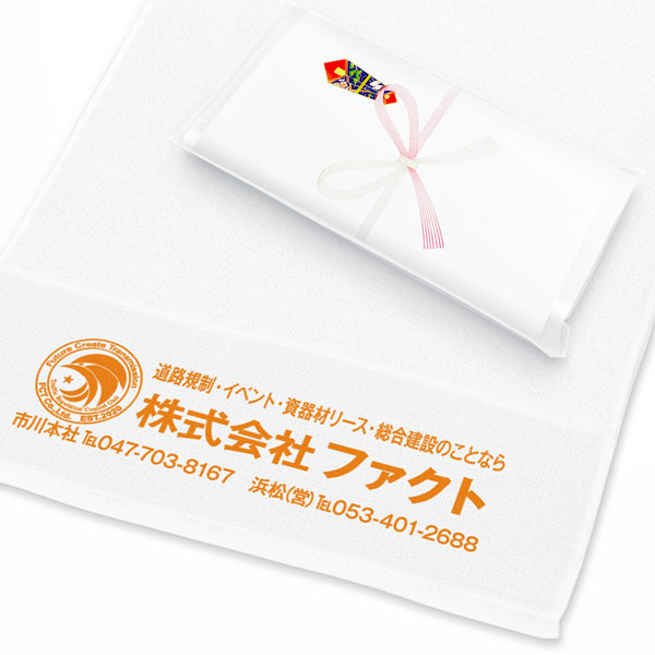 生地色:白印刷方法:片側1色名入れ印刷色:オレンジ書体:角ゴシック体レイアウト:3行タイプイラスト・ロゴ:データ入稿
