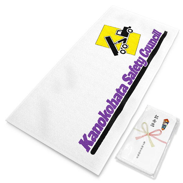 サイズ:フェイスタオル生地色:白印刷方法:広範囲印刷印刷色:黒、黄(166)、紫(188)イラスト・ロゴ:データ入稿