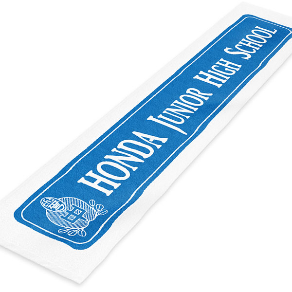 サイズ:マフラータオル生地色:白印刷方法:広範囲印刷印刷色:青(183)書体:データ入稿レイアウト:データ入稿