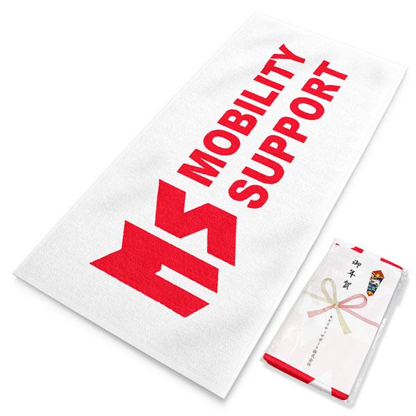 サイズ:フェイスタオル生地色:白印刷方法:片側1色名入れ印刷色:赤(156)書体:データ入稿レイアウト:ロゴ印刷のみイラスト・ロゴ:データ入稿