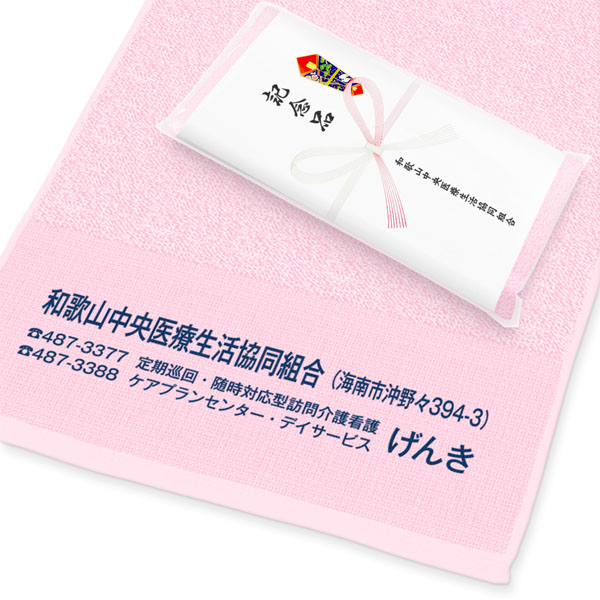 生地色:ピンク印刷方法:片側1色名入れ印刷色:濃紺(433)書体:角ゴシック体レイアウト:3行タイプ