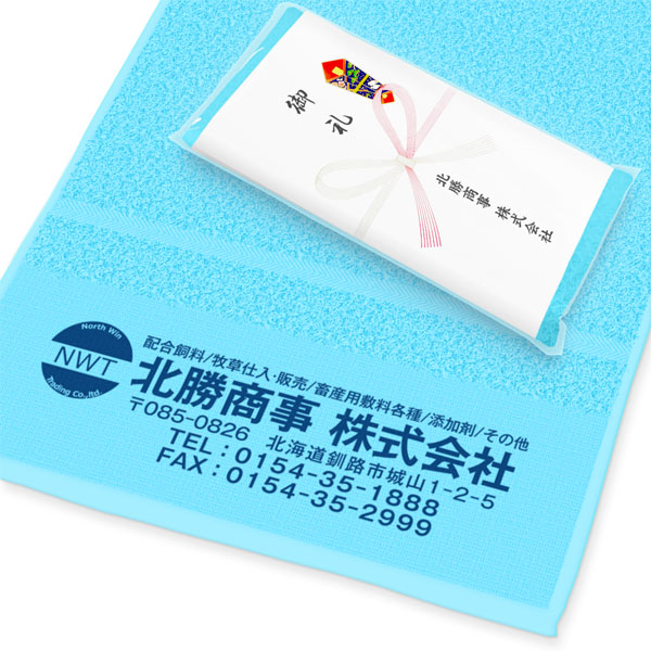 生地色:青印刷方法:片側1色名入れ印刷色:濃紺書体:角ゴシック体レイアウト:5行タイプイラスト・ロゴ:データ入稿