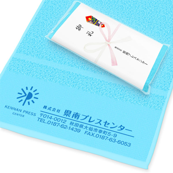 生地色:青印刷方法:片側1色名入れ印刷色:青書体:データ入稿レイアウト:3行タイプイラスト・ロゴ:データ入稿