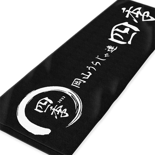 サイズ:スポーツタオル生地色:白印刷方法:全面印刷印刷色:黒イラスト・ロゴ:画像データ入稿