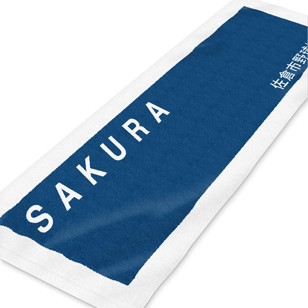 サイズ:スポーツタオル生地色:白印刷方法:広範囲印刷印刷色:濃紺(433)書体:角ゴシック体レイアウトNo:3027