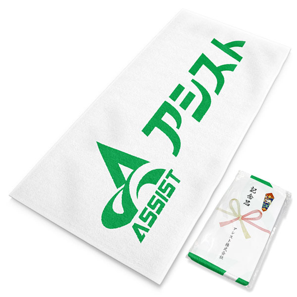 サイズ:フェイスタオル生地色:白印刷方法:広範囲印刷印刷色:緑(2561)イラスト・ロゴ:画像データ入稿