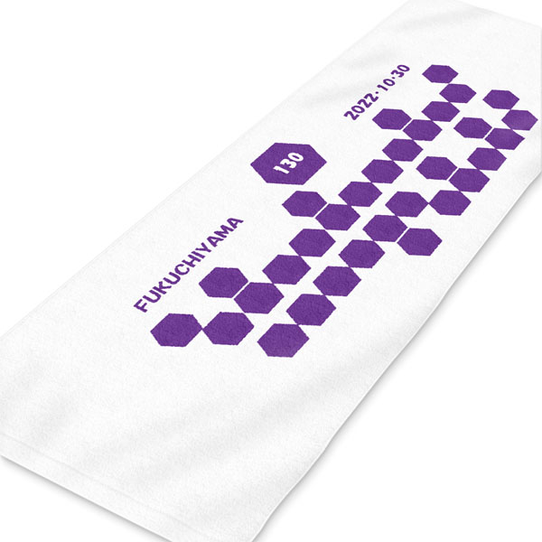 サイズ:スポーツタオル生地色:白印刷方法:広範囲印刷印刷色:紫書体:データ入稿イラスト・ロゴ:データ入稿
