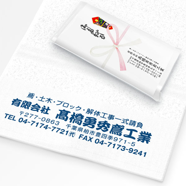 生地色:白印刷方法:片側1色名入れ印刷色:濃紺(433)書体:勘亭流レイアウト:4行タイプ