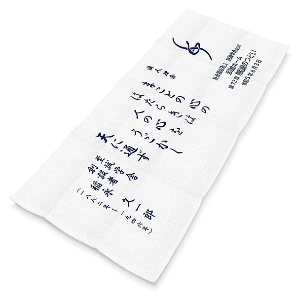手ぬぐい生地:岡生地色:白印刷方法:広範囲印刷印刷色:濃紺(433)書体:データ入稿