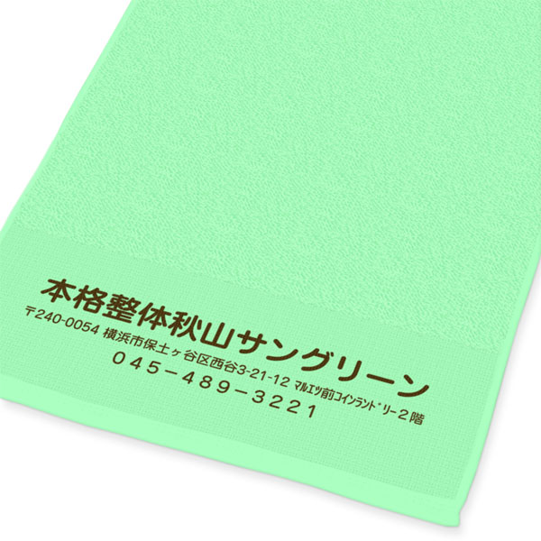 生地色:緑印刷方法:片側1色名入れ印刷色:茶色(303)書体:ポップ体レイアウト:3行タイプ