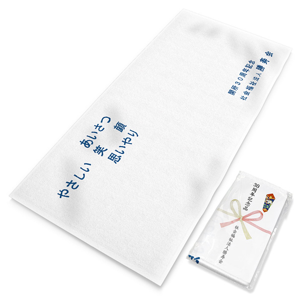 サイズ:フェイスタオル生地色:白印刷方法:広範囲印刷印刷色:濃紺(433)書体:データ入稿レイアウト:データ入稿