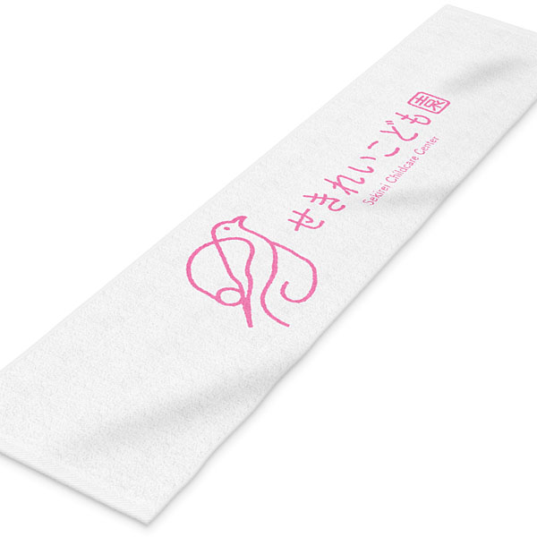 サイズ:マフラータオル生地色:白印刷方法:広範囲印刷印刷色:ピンク書体:データ入稿レイアウト:データ入稿